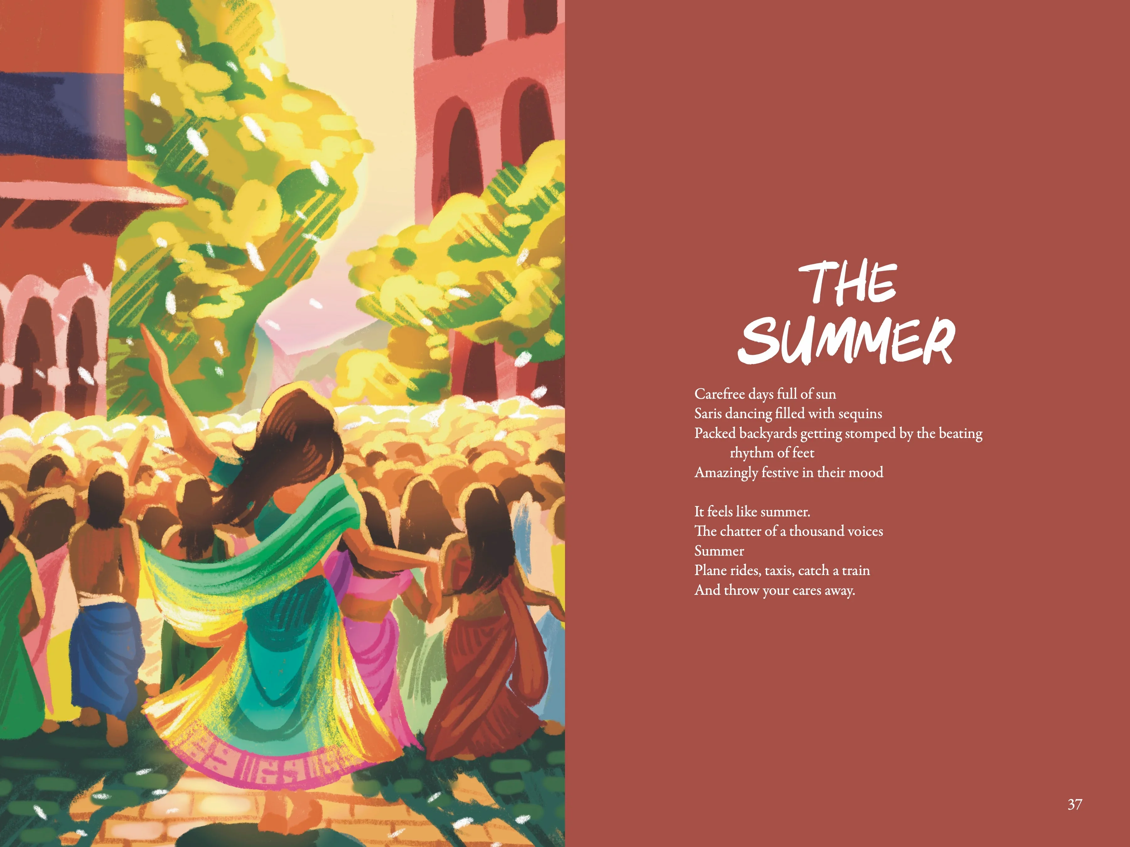 My brother requested for me to illustrate accompanying images for each of the 20 poems. However, I was only given a week to do this, so that we would have enough time to send the book for printing. This way we could receive copies in time for our trip to India, and be able to share his accomplishment with our family.