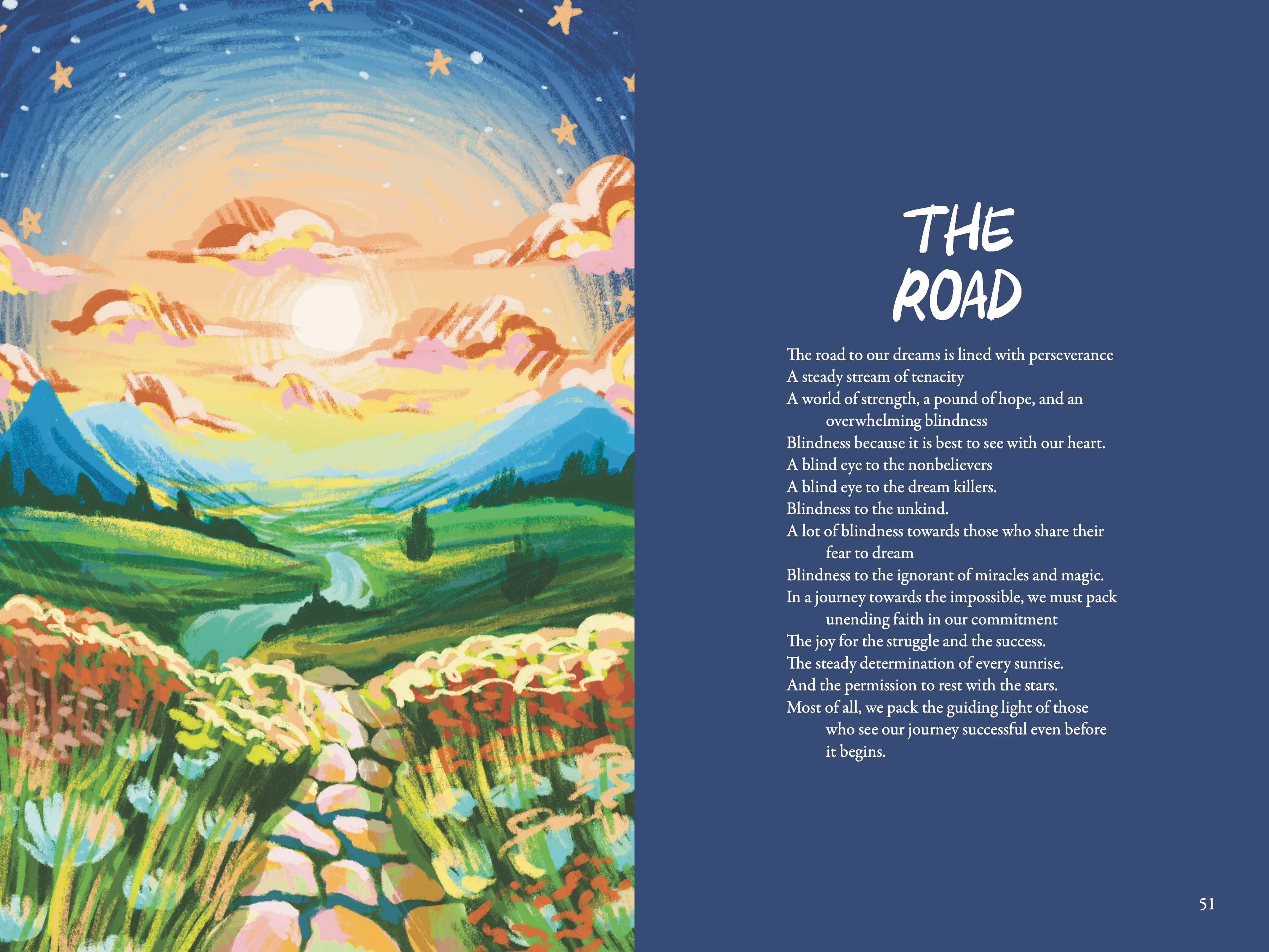 In the end, I was able to finish in time and I'm happy with how it turned out! The art style I chose to complete the drawings in allowed me to not only complete the art quicker, but maintain a semblance of abstract fleetingness, which I felt matched the imaginative poems.
